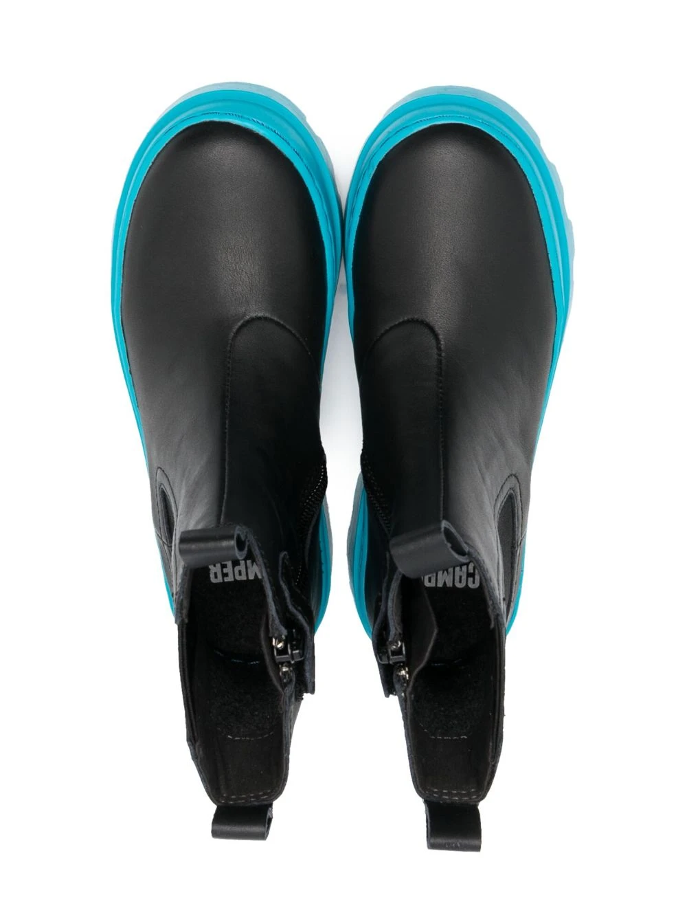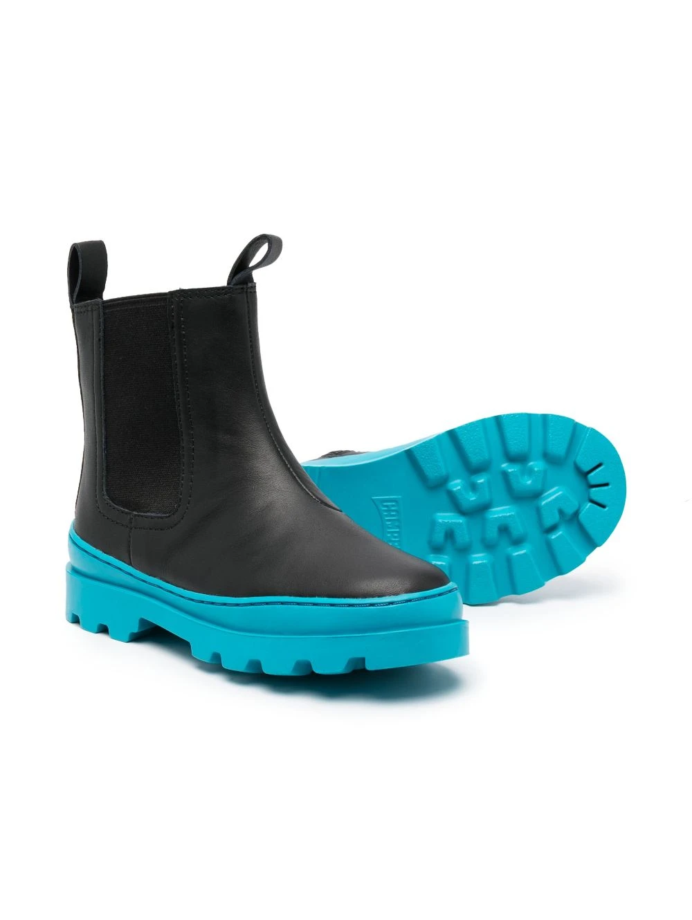 Sort, genanvendt polyester, kalveskind, elastiske paneler, hæltræk, rund tå, slip-on-design, rillet gummisål.