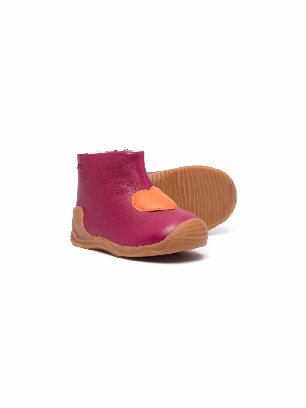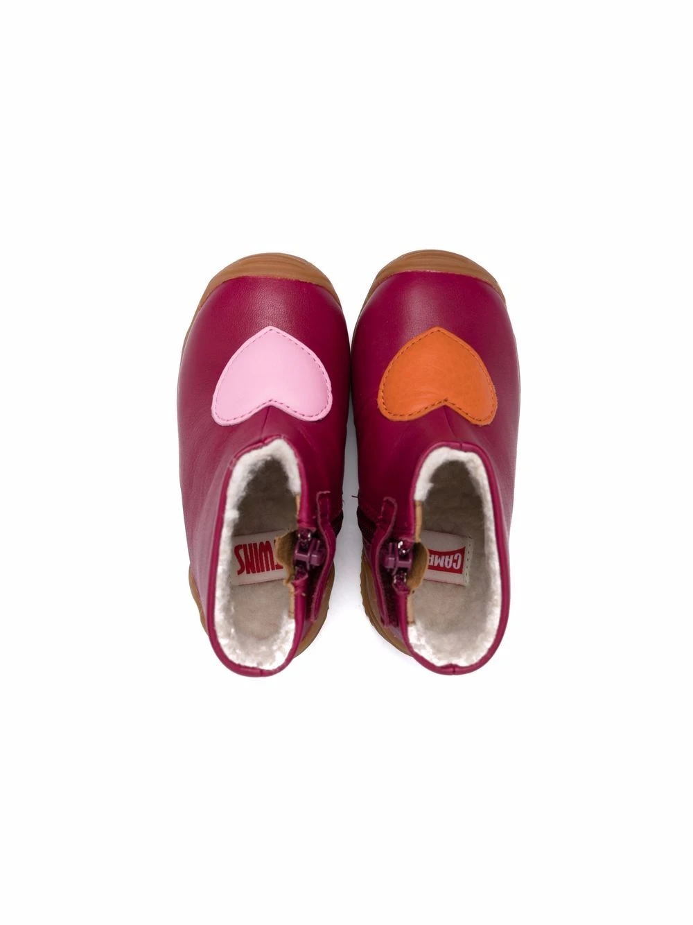 Støvler i læder med hjertemotiv i læder fra Camper Kids med grynet tekstur, hjertemotiv, imiteret lammeskindsfor, lynlåslukning i siden, indersål med logo og gummisål.