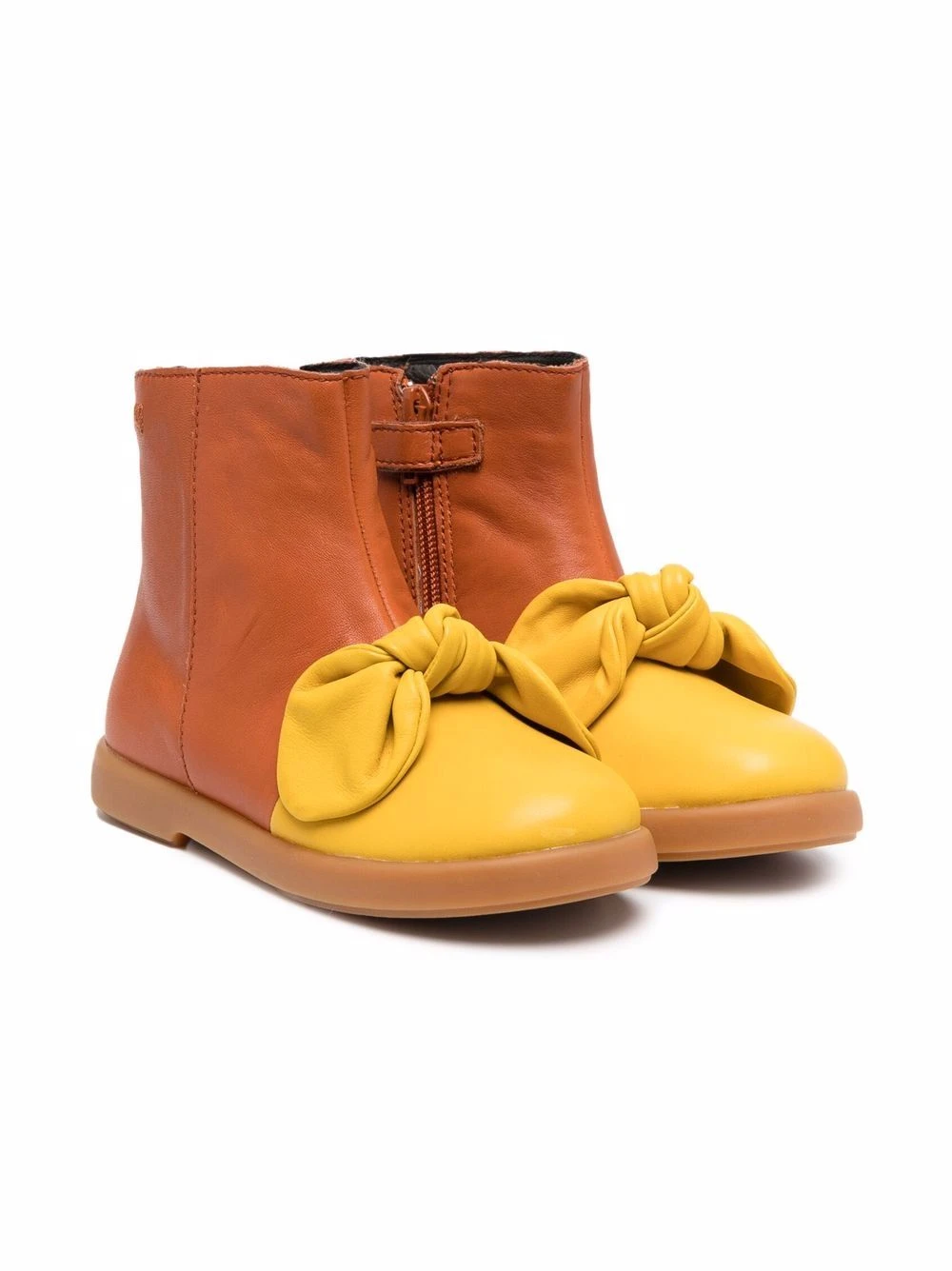 Støvler med knudedetalje i læder fra Camper Kids med ankellængde, lynlåslukning i siden, knudedetalje, rund tå og flad gummisål.