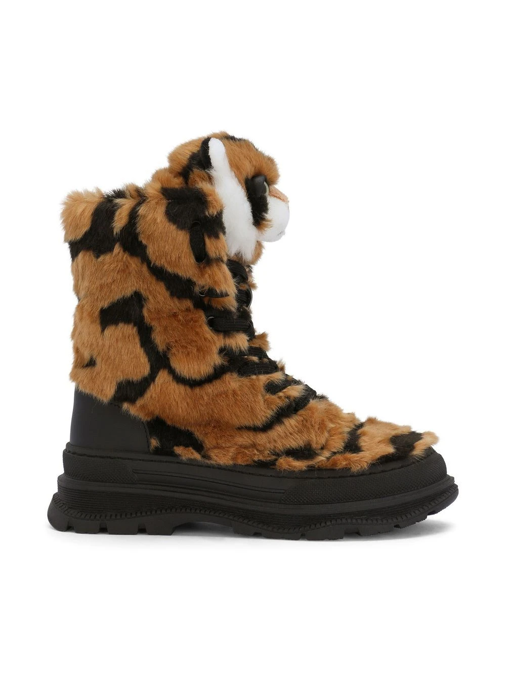 Karamelbrun, sort, råhvid, uldblanding, rund tå, snørelukning foran, indersål med logo, flad gummisål.
