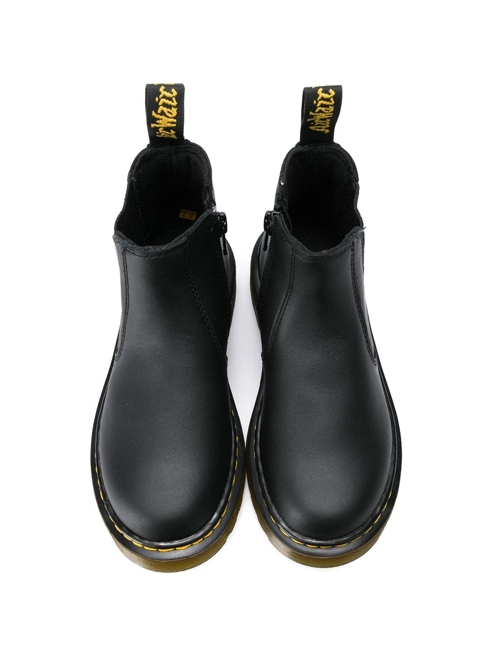 Softy chelsea-støvler fra Dr. Martens Kids med en rund tå, elastiske sidepaneler, et hæltræk og en gummisål.