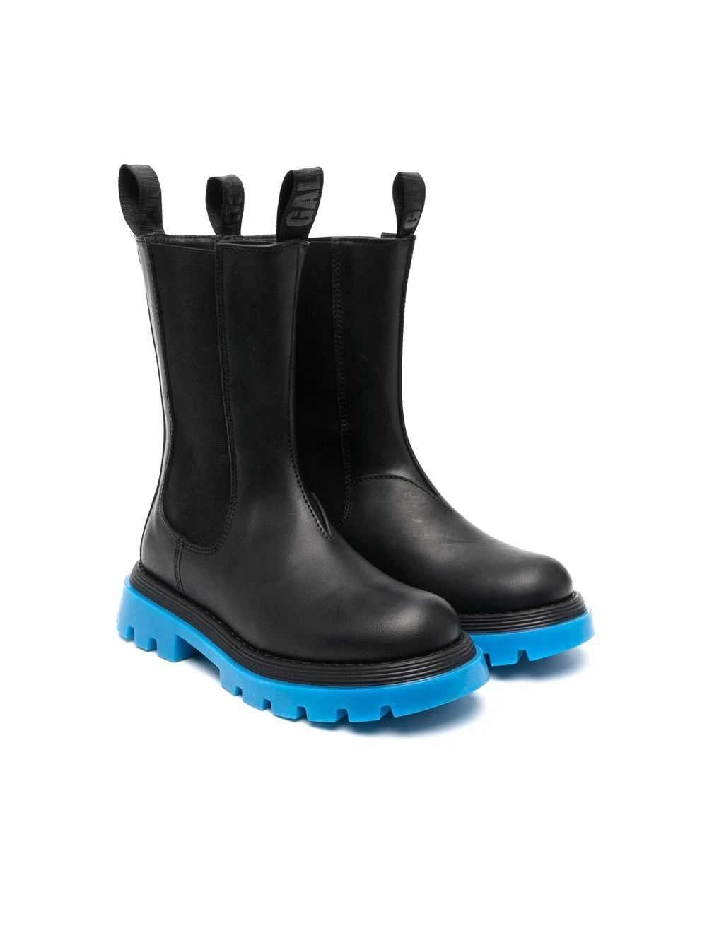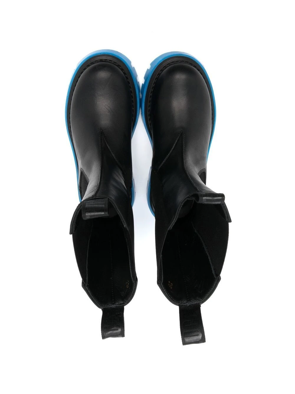 Koboltblå, sort, kalveskind, rund tå, elastiske sidepaneler, dobbelt rem ved åbningen, kraftig rillet gummisål.