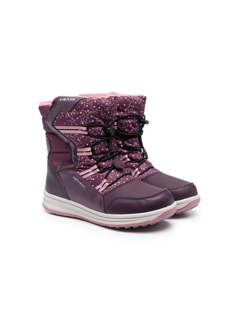 Mørk lyserød, kalveskind, logotryk i siden, snørelukning foran, rund tå, kraftig gummisål.