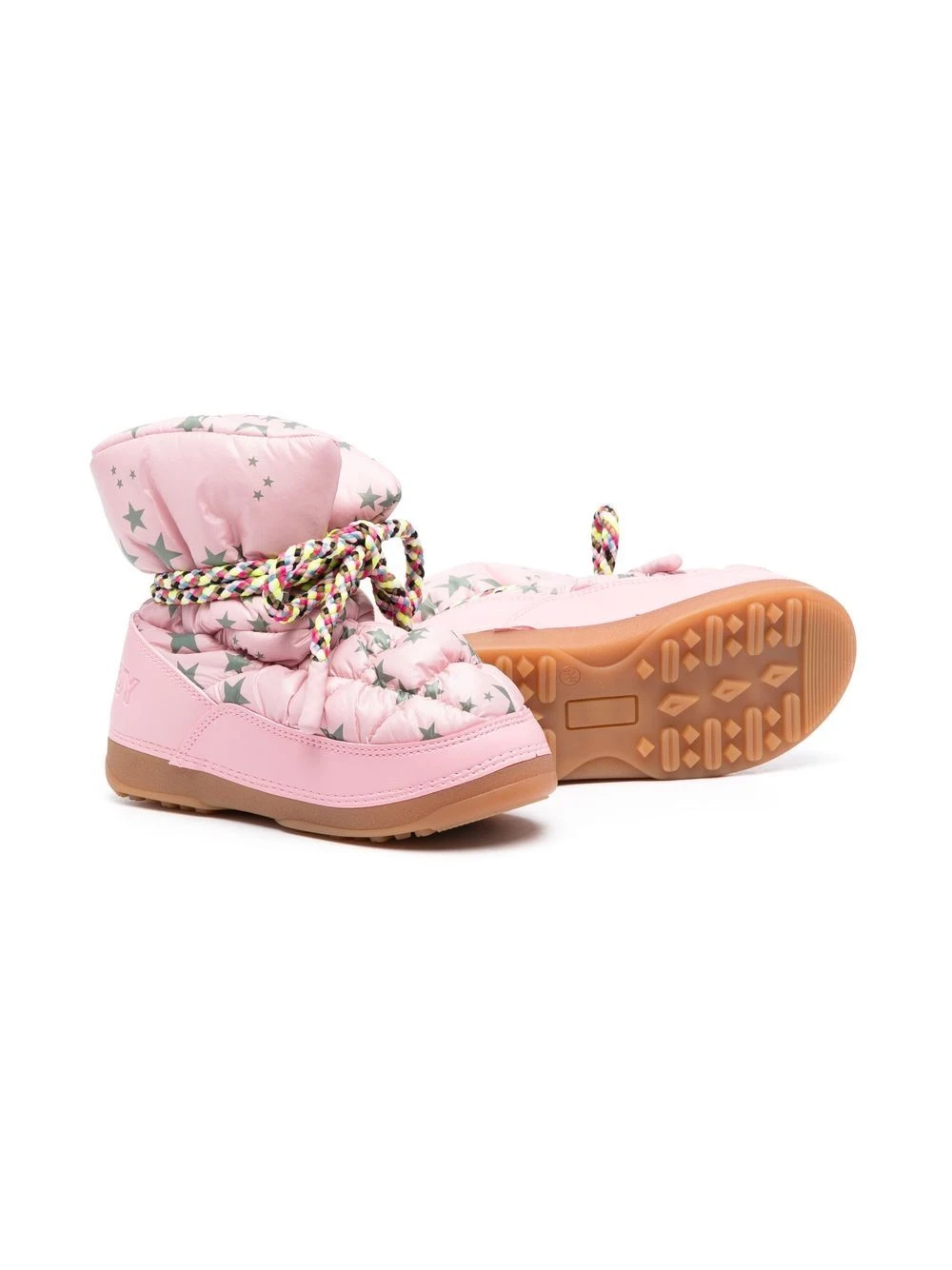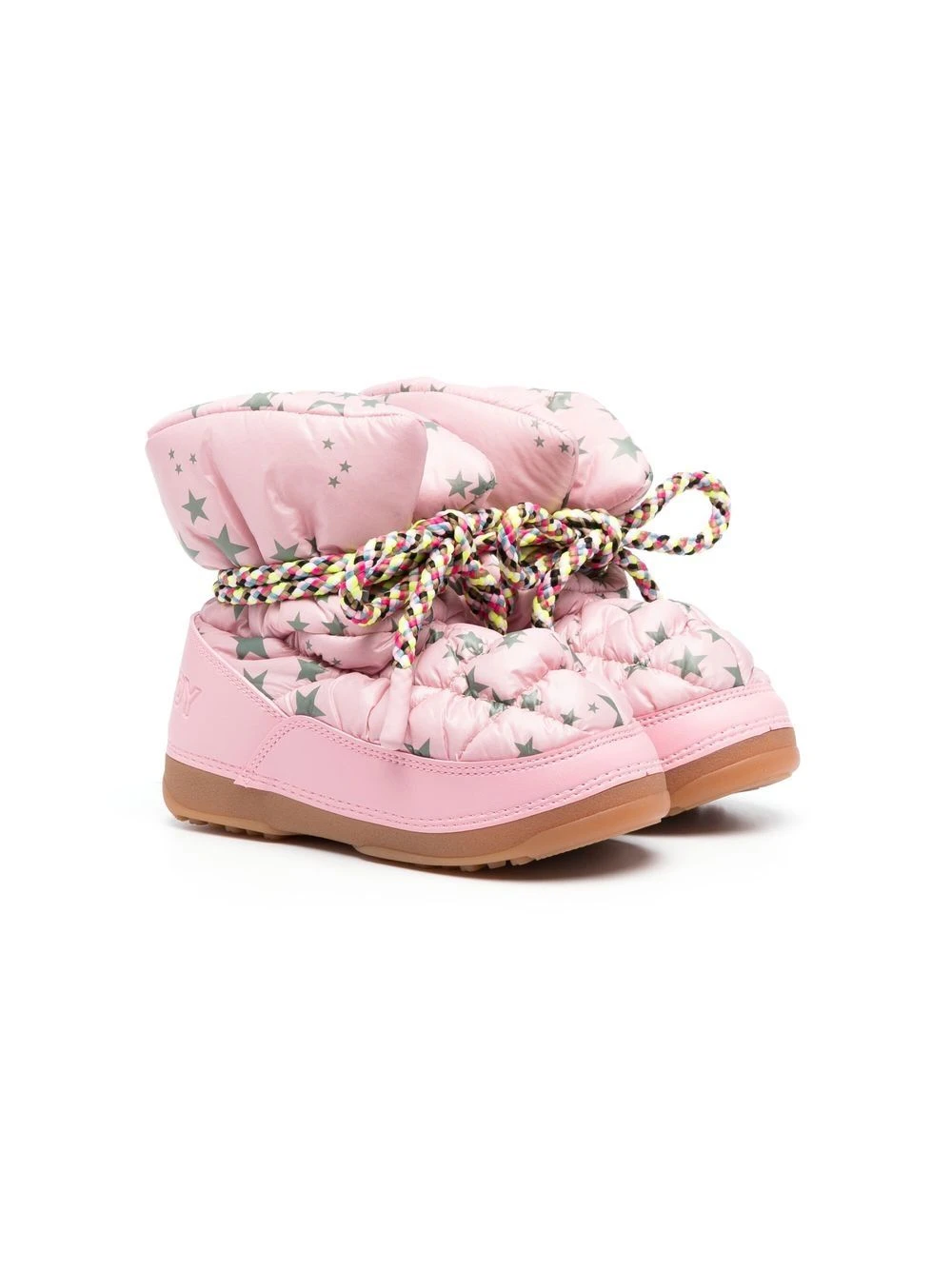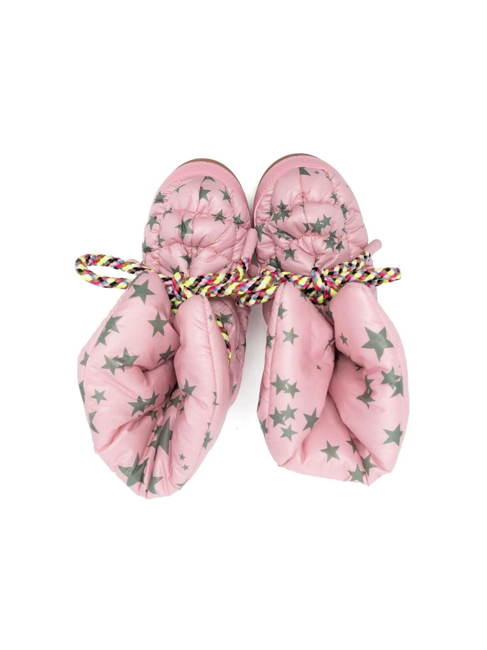 Lyserød, grå, ankellængde, quiltet, stjernetryk, rund tå, snørelukning foran, gummisål.