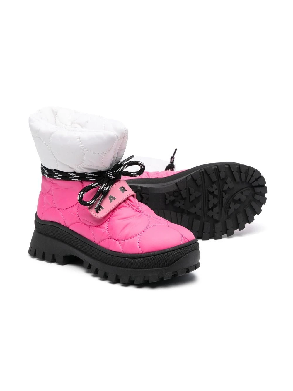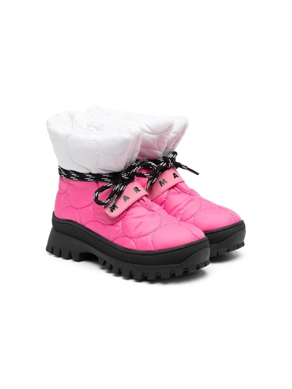 Kalveskind, snørelukning foran, rund tå, kraftig gummisål, tofarvet design.
