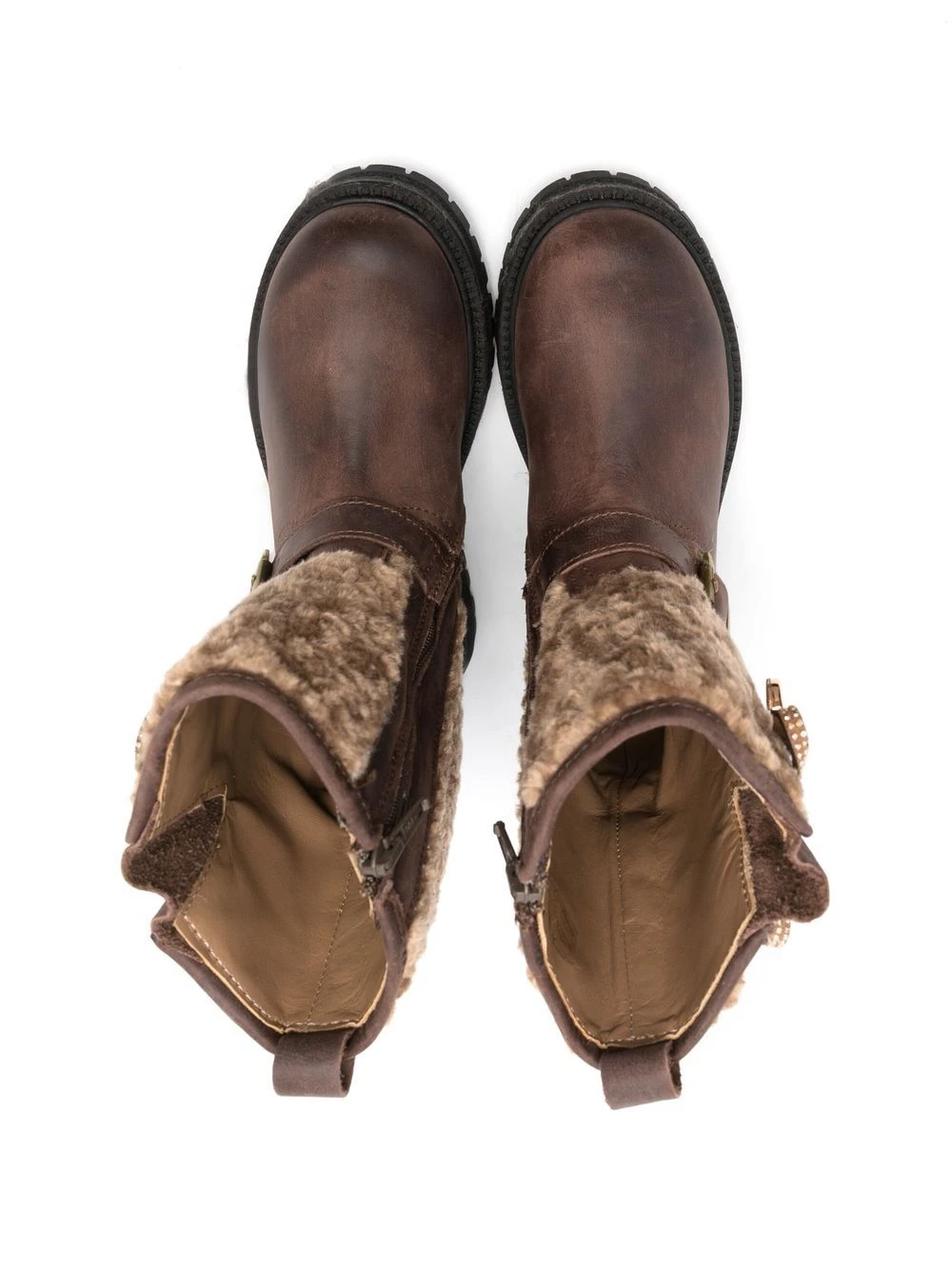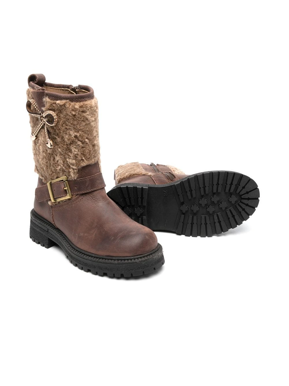 støvler i læder med spænde og sløjfedetalje