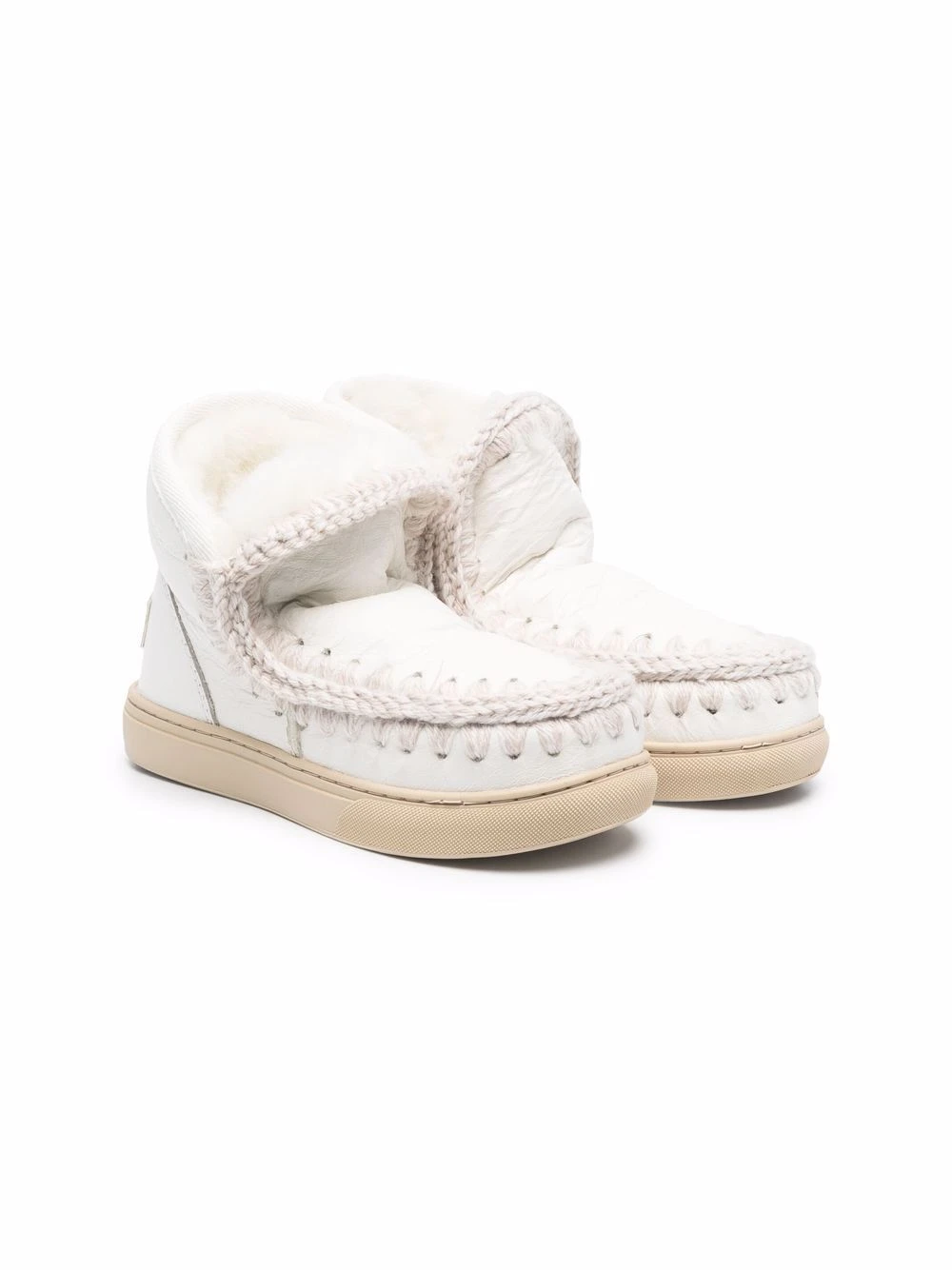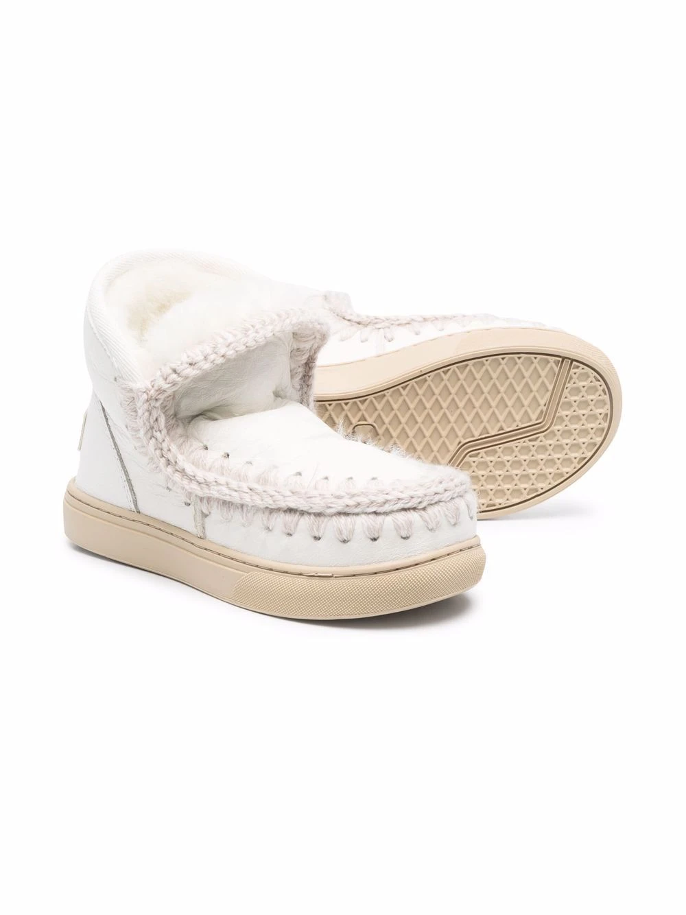 Pelsfor, kastestingsdetalje, rund tå, flad gummisål. Materiale: fåreskind.
