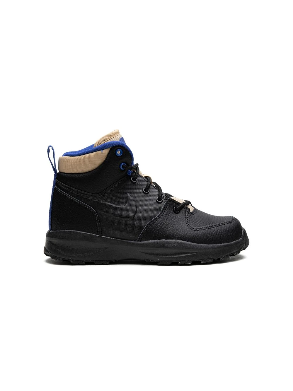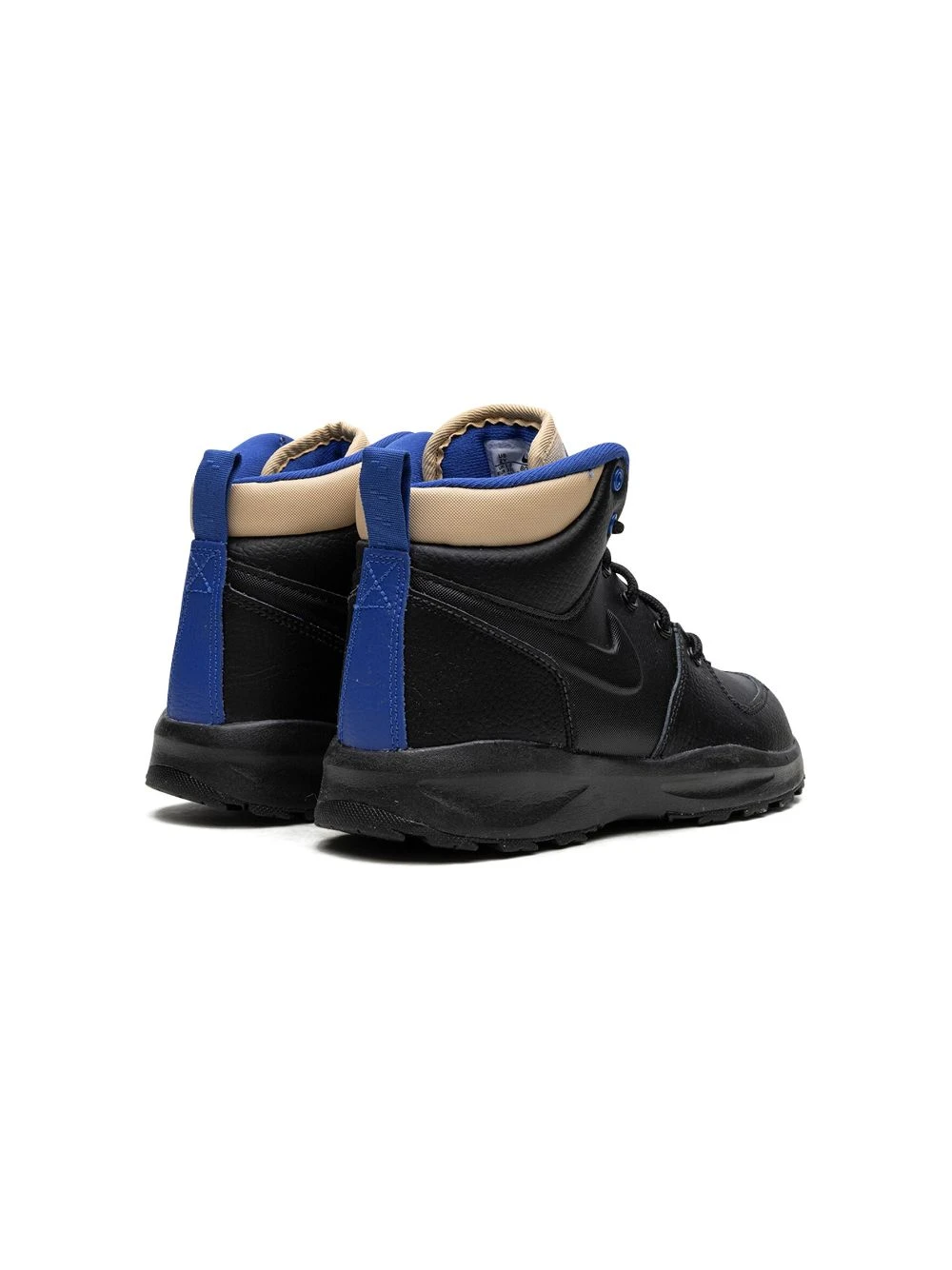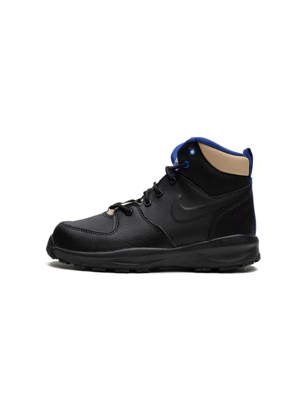 Sort, læder, Swoosh-logodetalje, rund tå, snørelukning foran, logomærke på pløsen, hæltræk, indersål med logo, gummisål.
