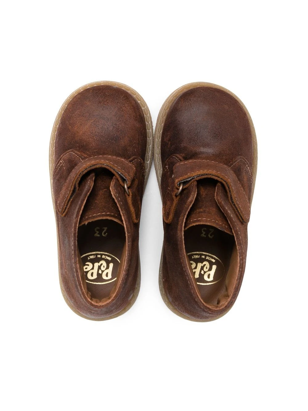 Karamelbrun, kalveskind, kalveruskind, rund tå, burrelukning foran, flad gummisål.