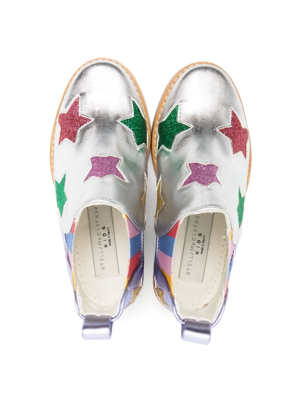 Sølvfarvet, flerfarvet, metallisk finish, stjernetryk, hæltræk, glimmerdetaljer, stribedetalje, elastiske sidepaneler, rund tå, slip-on-design, flad gummisål, indersål med logo. Vi samarbejder med Good On You – et uafhængigt bureau, der vurderer brands præstationer i forhold til deres påvirkning af planeten, mennesker og dyr – med en vurdering af flere kriterier forenklet til en fem point-skala. For at blive tildelt vores Ansvarsbevidst-mærke skal større brands score minimum fire ud af fem (‘God’), mens mindre brands skal score mindst tre ud af fem (‘Det er en start’).