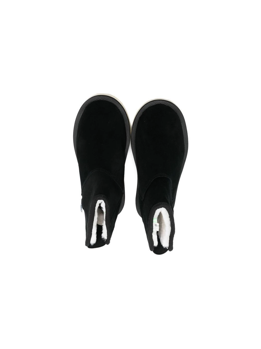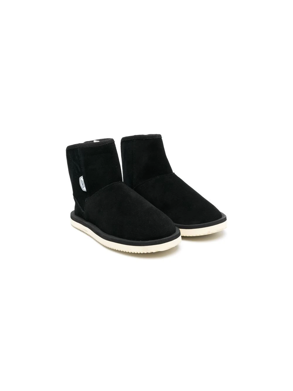 Sort/hvid, kalveruskind, flad gummisål, fleece-for, rund tå.