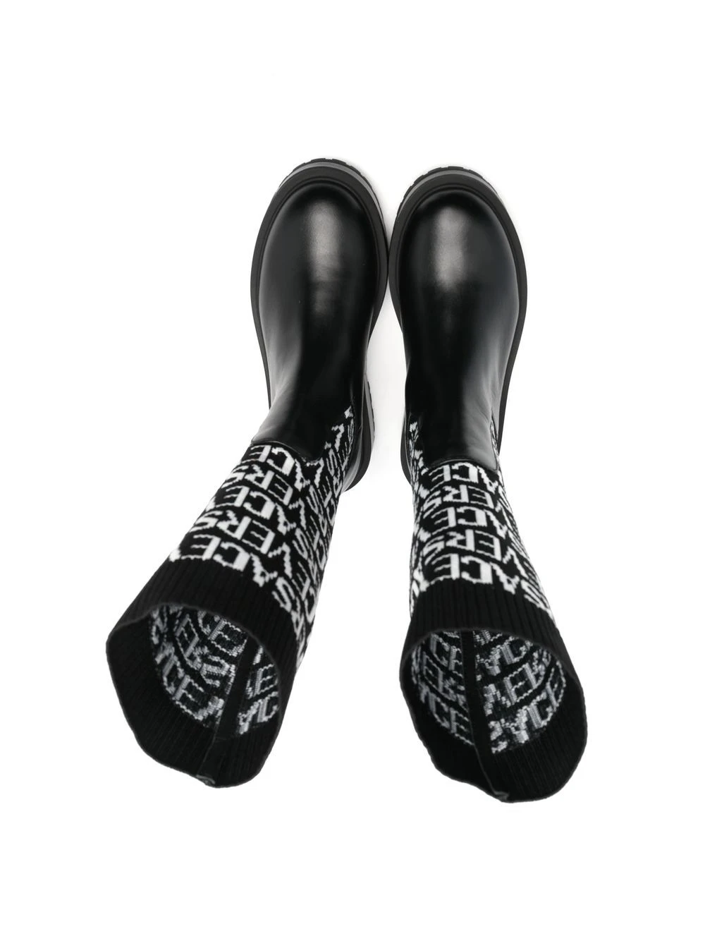 Sort, kalveskind, ankelstrømpe, jacquard logomotiv, ribbet kant, rillet gummisål.